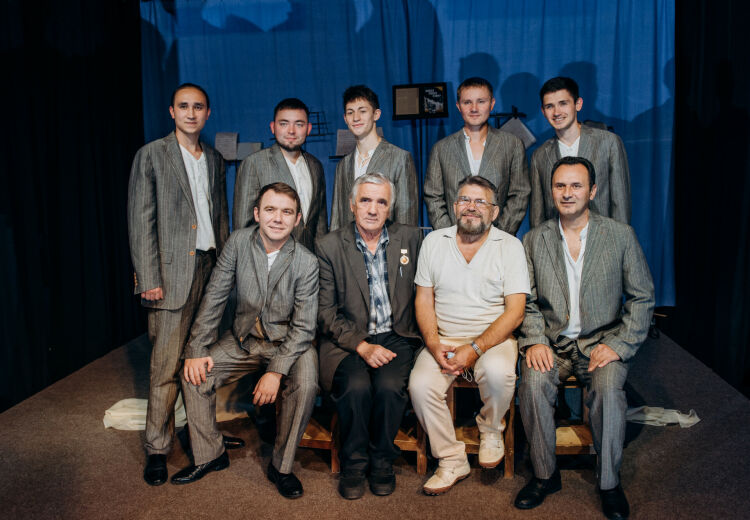 Спектакльнең режиссеры — Ильяс Гәрәев; музыкаль бизәлеш — Юрий Чаплин, Марат Яхъяев; пластик бизәлеш буенча режиссер — Ярослав Францев. Спектакльдә катнашалар: Рамазан Йосыпов, Алмаз Шаһимәрдәнов, Фазыл Насыйбуллин, Фаил Сафиуллин, Рифат Әхмәдиев, Айрат Мифтахов, Эльмир Нургалиев.