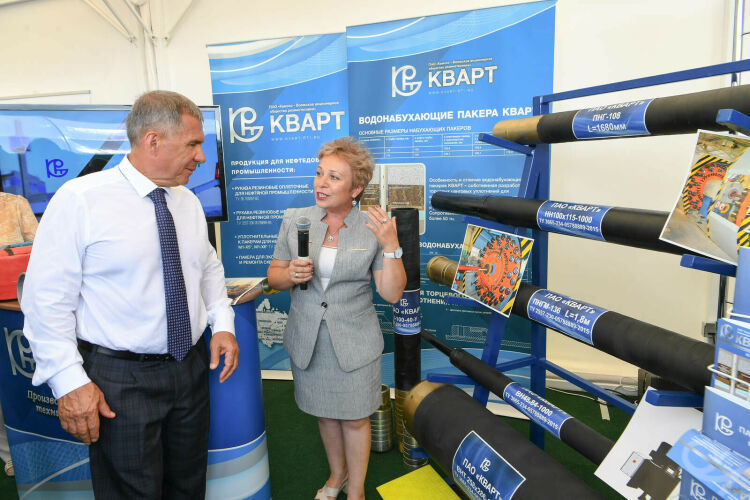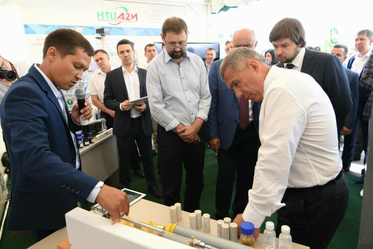 Ул республиканың нефть, технология предприятиеләре һәм оешмаларының яңа эшләнмәләре урын алган күргәзмә белән танышты. Алар арасында «Татнефть» ГАҖ, «Татнефть» компаниясенең «Бөгелмә механика заводы», «РИТЭК» АҖ, «Кварт» ГАҖ, «Нефтех» ЯАҖ, «ЭЛКАМ», «ТатПром-Холдинг», «ТАПАРТ», «НПФ «Пакер» компанияләре, шулай ук Казан (Идел буе) федераль университеты бар.