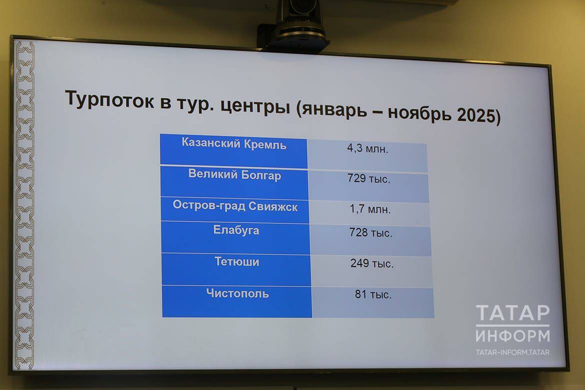 «2025 елның 10 аенда Татарстанга 4 миллион турист килгән. Бу узган елның шул ук чоры белән чагыштырганда 18,3 процентка күбрәк. Йомгаклау хисаплары буенча бу сан үсәр яки шул килеш калыр, дип өметләнәбез. Бу бик яхшы саннар. Туризм тармагындагы инфраструктураның тулы һәм куәтле булуын күрәбез. Шуңа күрәдер дә Россия Федерациясенең бөтен территориясеннән диярлек туристлар килә», – дип белдерде җитәкче.