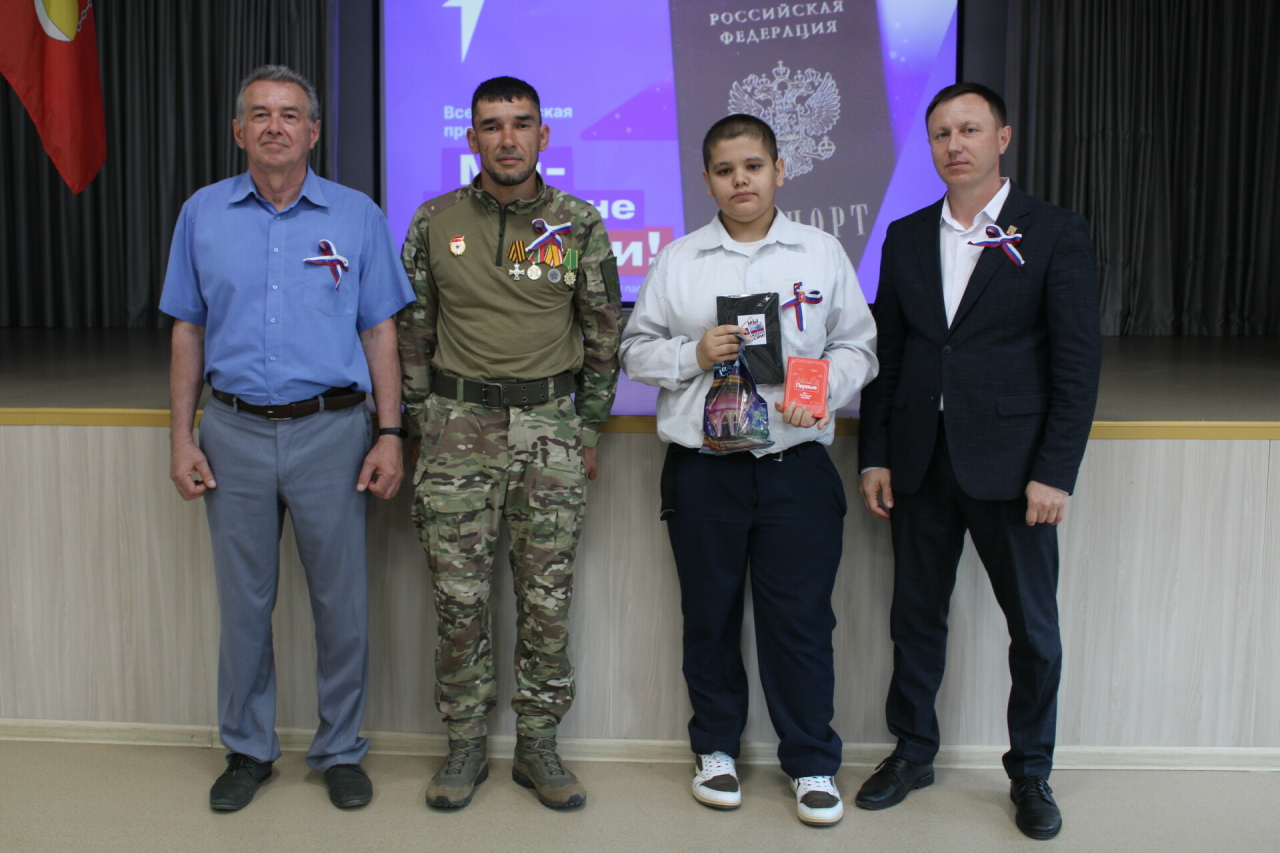 Алар кешенең шәхесен билгеләүче һәм гомер буе озата баручы төп документны муниципаль район башкарма комитеты җитәкчесенең социаль мәсьәләләр буенча урынбасары Динар Гыйниятуллин, Ватанны саклаучылар фондының район бүлеге җитәкчесе Айдар Галимҗанов һәм махсус хәрби операциядән вакытлыча ялга кайткан Теләче авылы егете Фәнзил Зыятдинов кулыннан кабул итеп алды. Динар, Айдар һәм Фәнзил абыйлары яшьләрне әлеге күренекле вакыйга белән котлап кына калмыйча, изге теләкләрен дә җиткерде.