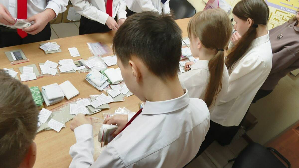 Түбән Кама коррекция мәктәбе укучылары хәрбиләр өчен коры душ комплектлары ясаган