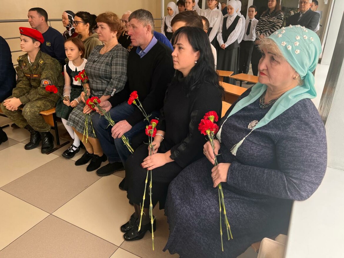Истәлек тактасын ачу уңаеннан гимназиядә Линарның туганнары, дуслары, сыйныфташлары, ветераннар, шәһәр җитәкчелеге вәкилләре җыелды.