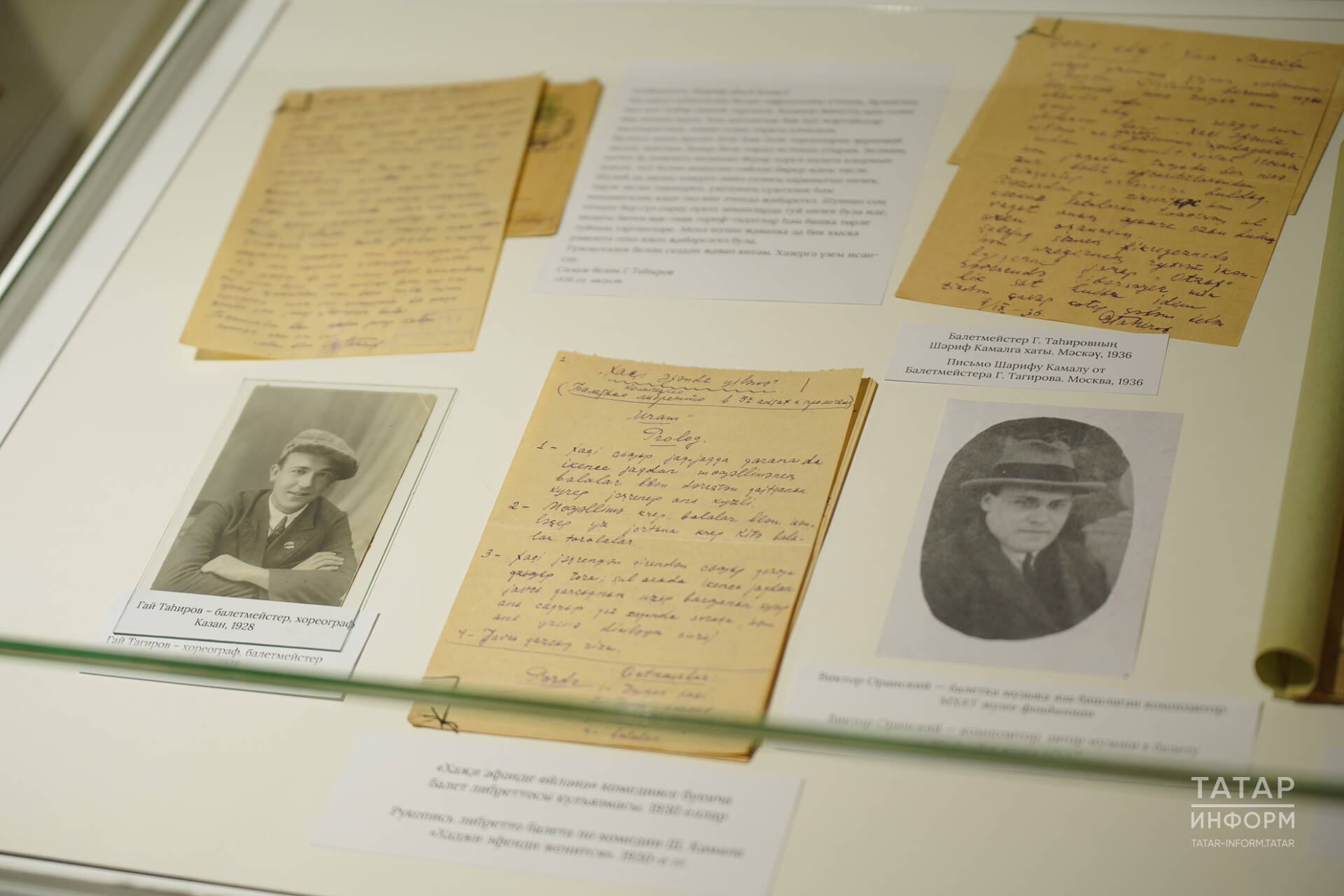«1936 елда хореограф Гай Таһиров либретто яза башлый, ләкин әлеге проект планда гына кала. Күргәзмәдә либреттоның бер караламасы тәкъдим ителә. Әлеге язулар Милли музей фондларында саклана. Шулай ук Шәриф Камал белән Гай Таһировның балет мәсьәләсе буенча язышкан хатлары да бар, шунда ук аның әлеге идеягә зур игътибар белән караганын күрә алабыз. Хәтта Мәскәүдәге татар сәнгате декадасына әзерләнгән вакытта балет мәсьәләсе күтәрелгәч, Гай Таһиров: «Әйдәгез, «Хаҗи әфәнде өйләнә»не куябыз», – дип тәкъдим иткән була, ләкин бу фикер кабул ителми. Шулай итеп, татар мәдәнияте тарихында беренче булырга тиешле балет куелмый кала», – дип сөйләде ул.