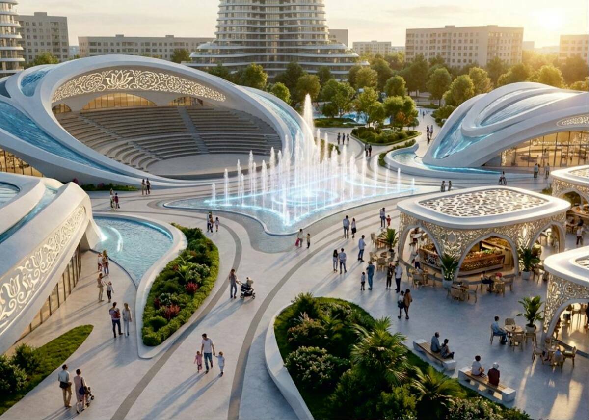 Проектта амфитеатр, сезонлы күргәзмәләр өчен павильоннар, фонтаннар һәм хәләл-ярминкәләр зоналары планлаштырыла. Мәйданчык заманча форматлар ярдәмендә татар халкының милли бәйрәме – Сабантуй рухын һәм Казан кунакчыллыгын чагылдырачак.