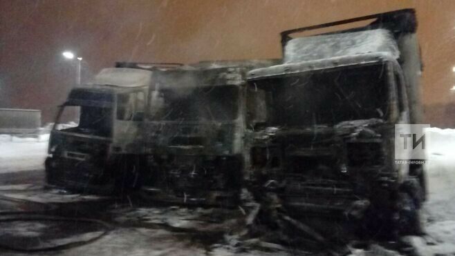 М7 юлының 890нчы километрындагы автотукталышта берьюлы өч зур йөк машинасы янган.